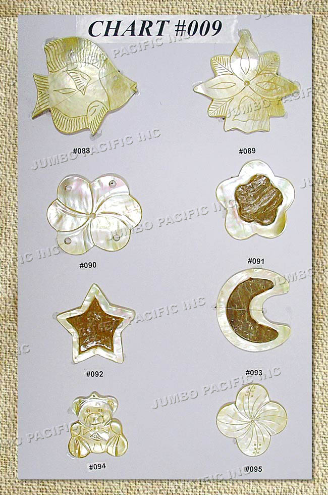 Assorted MOP shell pendants.
